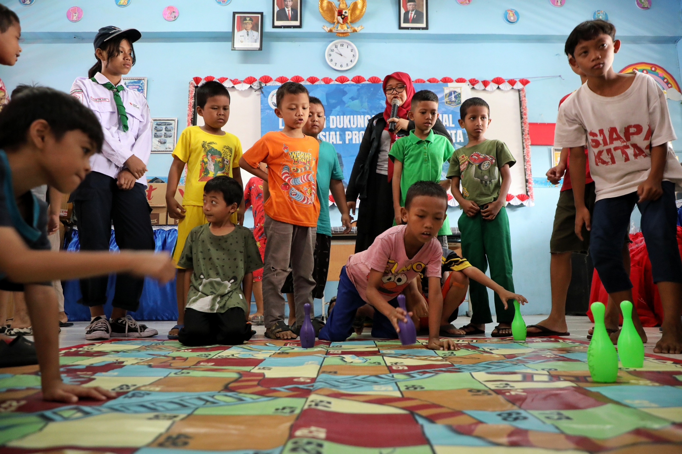 Dinas Sosial Provinsi DKI Jakarta memberikan Layanan Dukungan Psikososial (LDP) kepada anak-anak penyintas kebakaran di SDN Manggarai 05, Kelurahan Manggarai, Tebet, Jakarta Selatan, Kamis (15/8). Layanan psikososial ini dilakukan untuk mengembalikan kesehatan anak-anak terutama kesehatan mental agar tidak mengalami trauma berkepanjangan pasca terjadinya kebakaran yang menghanguskan rumah mereka.