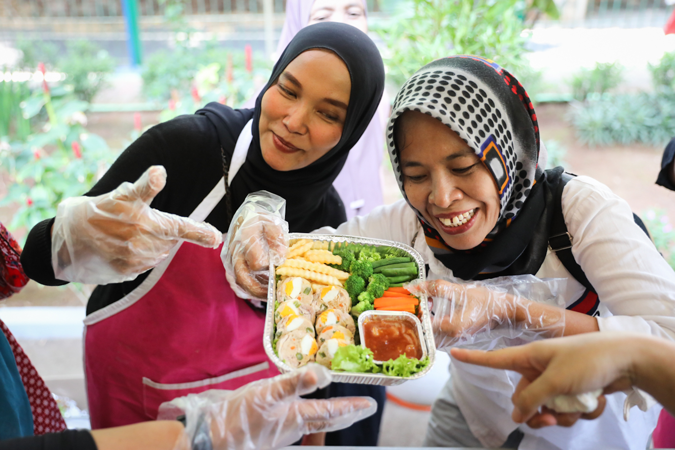 Sejumlah warga mengikuti pelatihan diversifikasi olahan pangan ternak di RPTRA Gondangdia, Menteng, Jakarta Pusat, Selasa (13/8). Pelatihan diversifikasi olahan pangan ternak digagas oleh Suku Dinas Ketahanan Pangan, Kelautan dan Pertanian (Sudin KPKP) Jakarta Pusat sebagai upaya pencegahan stunting serta menumbuhkan potensi wirausaha baru.