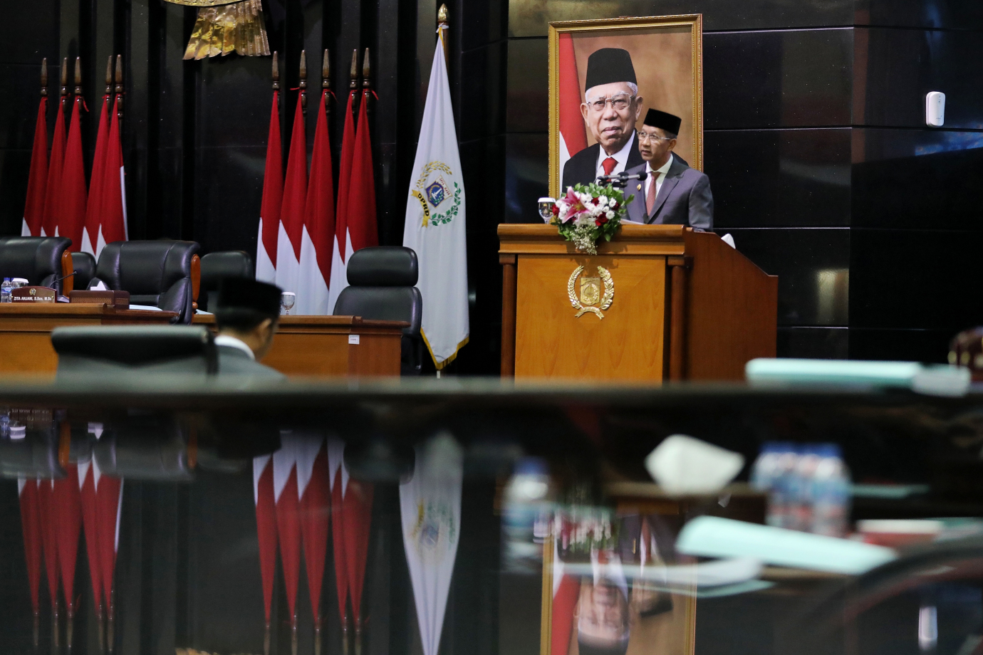 Penjabat (Pj) Gubernur DKI Jakarta, Heru Budi Hartono menyampaikan jawaban atas pemandangan umum fraksi-fraksi DPRD DKI Jakarta terhadap Rancangan Peraturan Daerah (Raperda) tentang Perubahan Anggaran Pendapatan dan Belanja Daerah (APBD) Provinsi DKI Jakarta Tahun Anggaran 2024 di Gedung Paripurna DPRD DKI Jakarta, Kebon Sirih, Jakarta Pusat, Kamis (8/8). Penyusunan Raperda Perubahan APBD 2024 ini merupakan kelanjutan dari kesepakatan bersama antara Eksekutif dengan Legislatif terhadap Perubahan Kebijakan Umum Anggaran serta Perubahan Prioritas dan Plafon Anggaran Sementara (KUA-PPAS) Tahun Anggaran 2024.