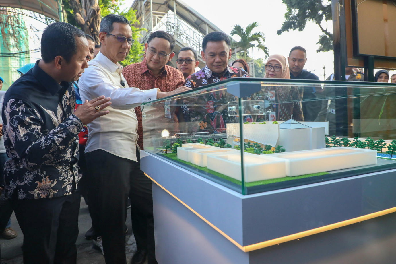 Penjabat (Pj) Gubernur DKI Jakarta, Heru Budi Hartono meninjau Pasar Pramuka yang akan direvitalisasi di Jalan Pramuka, Palmeriam, Matraman, Jakarta Timur, Jumat (2/8). Dalam kunjungan ini Pj Gubernur melihat gambar rencana revitalisasi sejumlah pasar di Jakarta salah satunya Pasar Pramuka dan dilanjutkan mengunjungi kegiatan sembako murah di Pasar Pramuka.