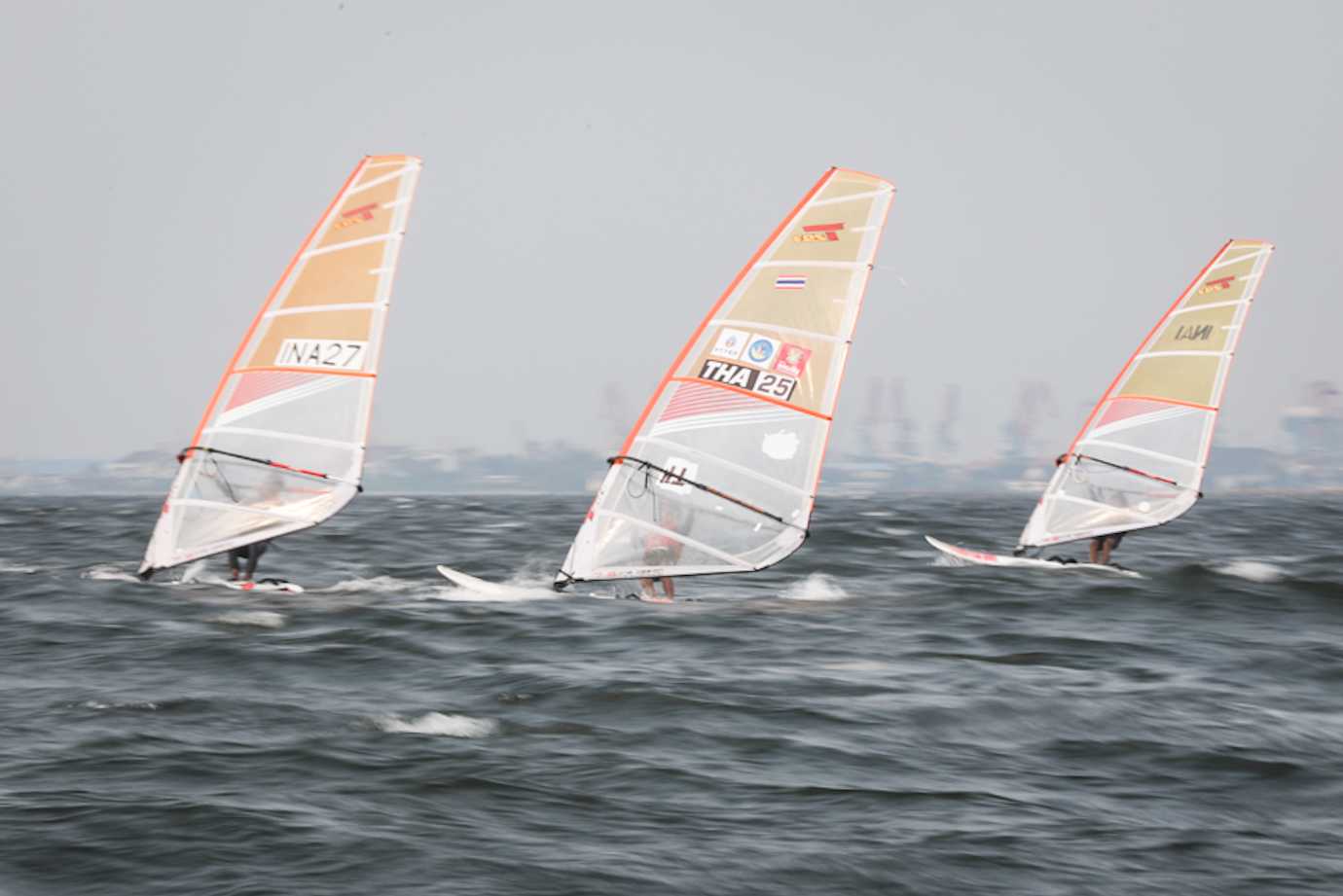 Atlet layar dari berbagai negara bertanding dalam ajang Jakarta International Sailing Championship 2024 di Symphony of the Sea, Ancol Taman Impian, Tanjung Priok, Jakarta Utara, Jumat (26/7). Sebanyak 125 atlet layar dari 9 negara berpartipasi pada ajang kejuaraan layar yang berlangsung selama tiga hari pada 26-28 Juli 2024.