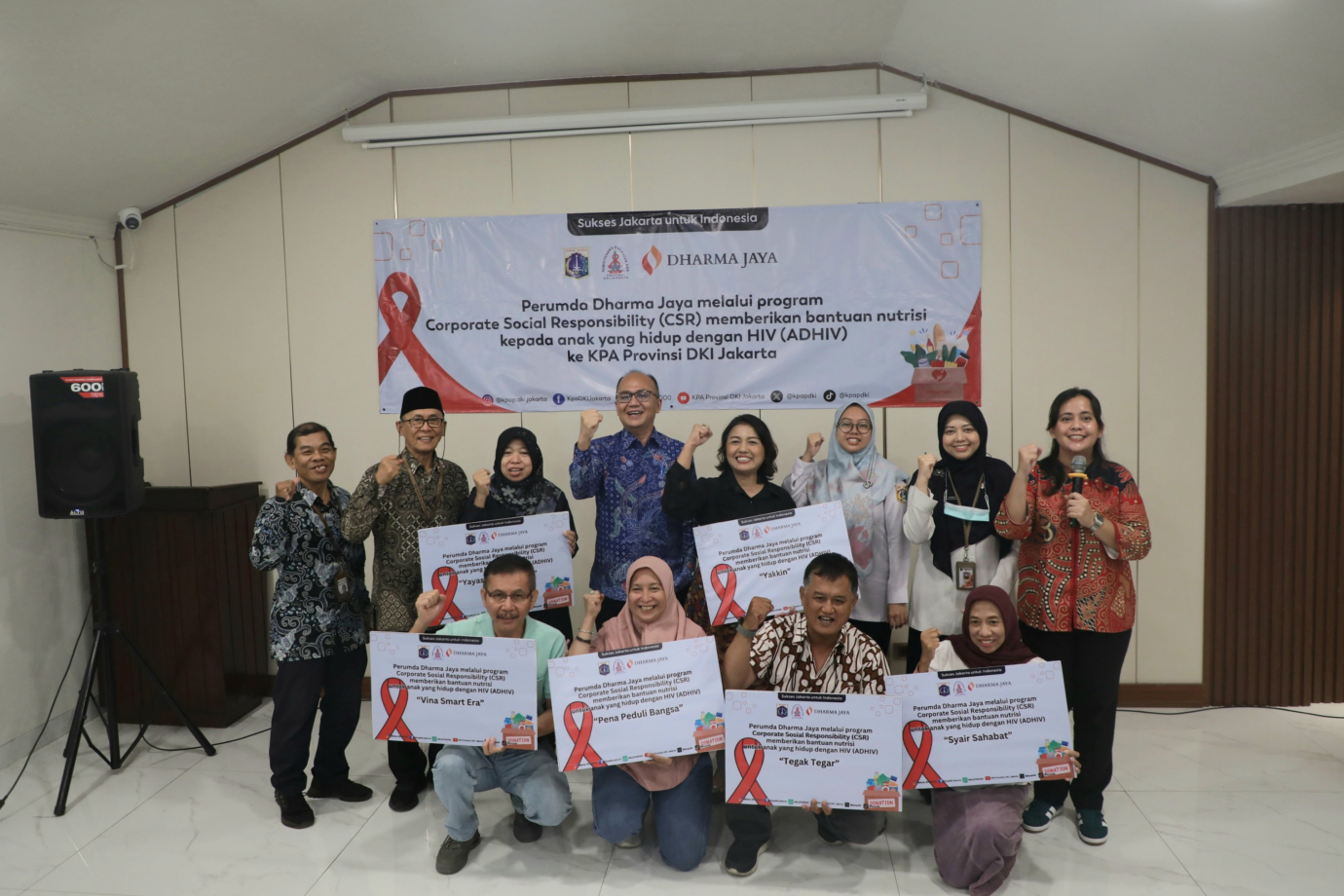 Perusahaan Umum Daerah (Perumda) Dharma Jaya bersinergi dengan Komisi Penanggulangan Aids Provinsi (KPAP) DKI Jakarta memberikan bantuan nutrisi kepada Anak yang Hidup Dengan HIV (ADHIV) di Kantor Perumda Dharma Jaya, Jalan Raya Penggilingan, Penggilingan, Cakung Jakarta Timur, Rabu (24/7). Bantuan nutrisi yang diberikan berupa beras, susu dan vitamin yang nantinya akan disalurkan kepada 100 Anak yang Hidup dengan HIV (ADHIV).