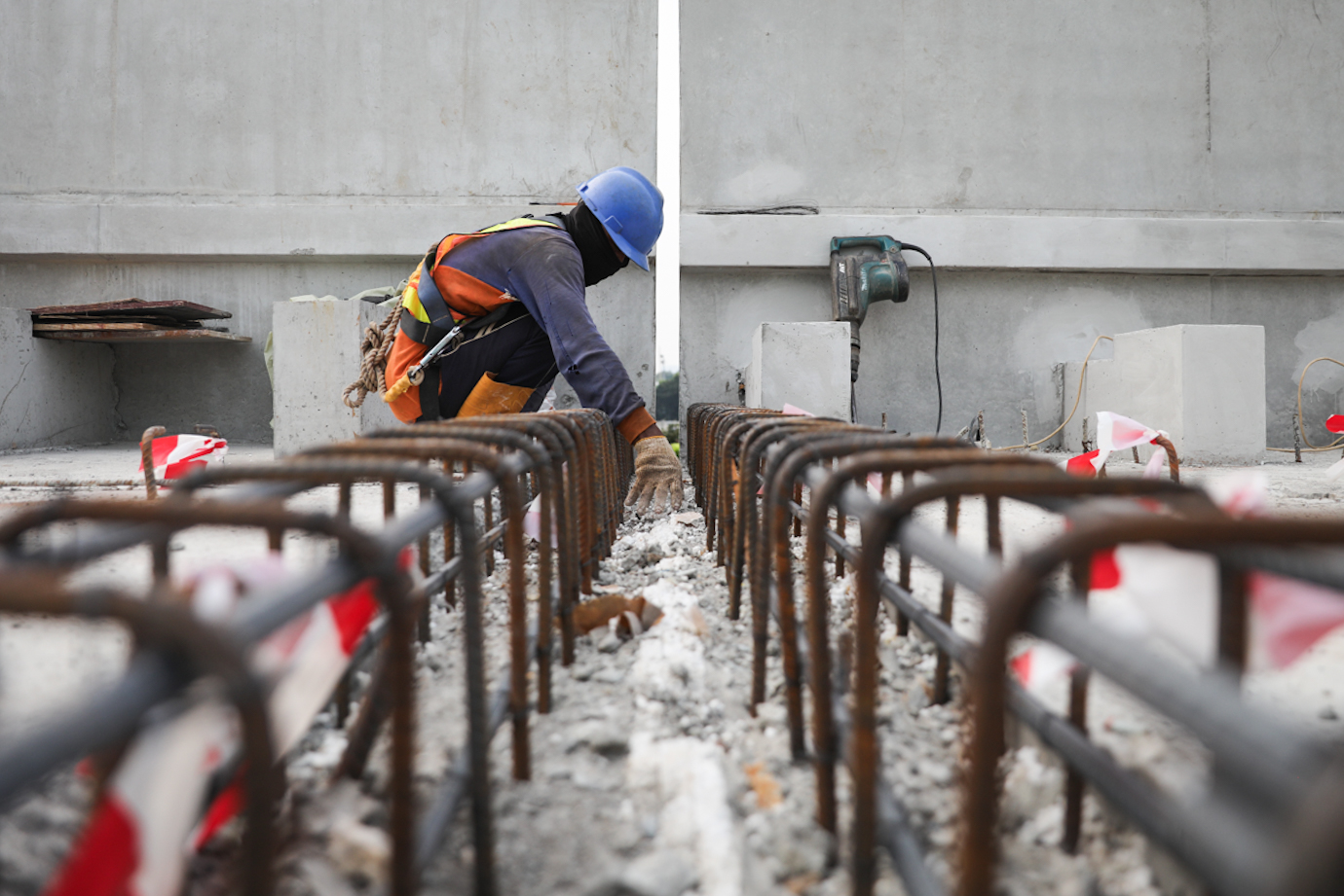 Sejumlah pekerja mengerjakan pembangunan konstruksi proyek LRT Jakarta fase 1B di Jalan Pemuda, Rawamangun, Pulo Gadung, Jakarta Timur, Kamis (18/7). Proyek LRT Jakarta fase 1B Velodrome-Manggarai telah mencapai progres 22,4% per tanggal 14 Juli 2024 dengan deviasi positif.