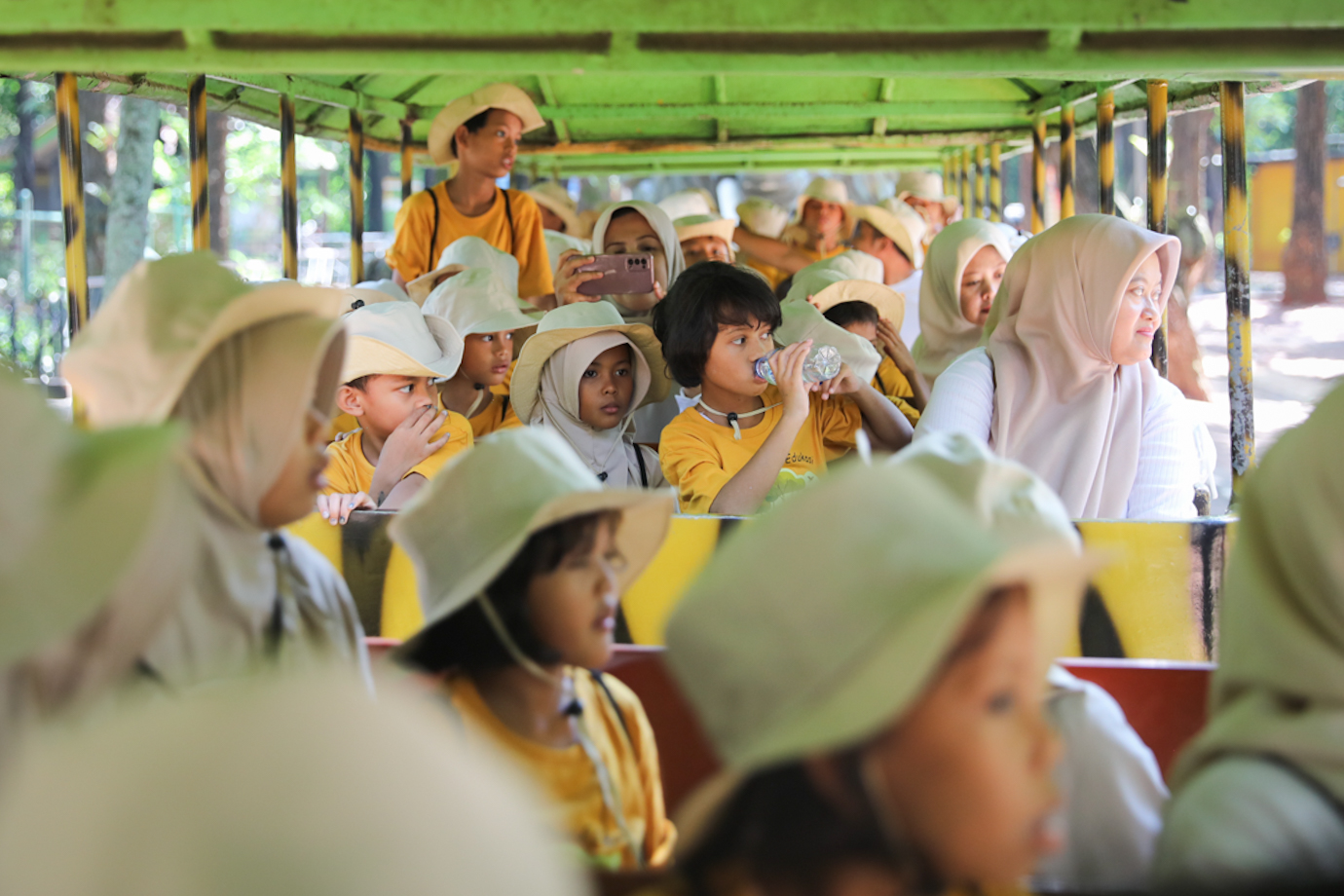 Sebanyak 100 anak asuhan Panti Sosial Asuhan Anak (PSAA) Utama 1 Klender berwisata edukasi ke Taman Margasatwa Ragunan, Pasar Minggu, Jakarta Selatan, Senin (8/7). Kegiatan wisata edukasi yang digelar oleh Dharma Wanita Persatuan (DWP) DKI Jakarta tersebut diawali dengan pemeriksaan kesehatan gratis oleh petugas kesehatan Puskesmas Pasar Minggu dan Cilandak.