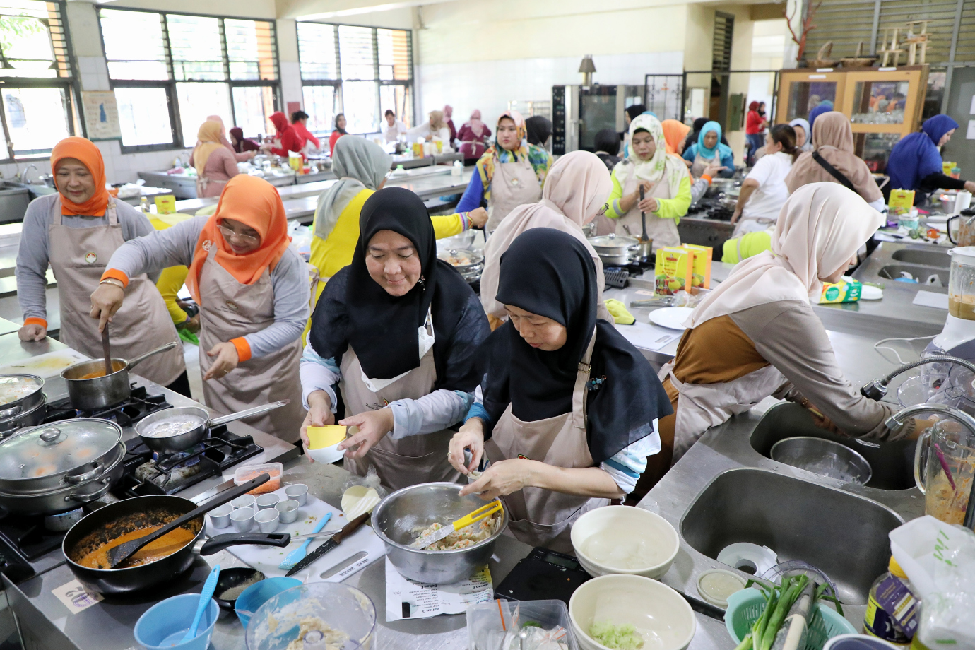 Dharma Wanita Persatuan (DWP) Provinsi DKI Jakarta menggelar pelatihan dan lomba membuat makanan sehat berbahan dasar ikan di Sekolah Menengah Kejuruan Negeri (SMK) 57 Jakarta, Jalan Taman Margasatwa, Jati Padang, Pasar Minggu, Rabu (3/7). Acara ini diikuti oleh 70 peserta dari DWP di seluruh OPD, Kota, Kabupaten di DKI Jakarta.