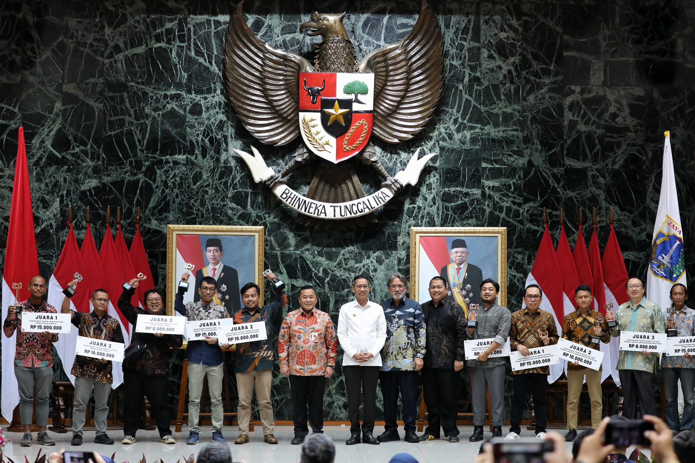 Dinas Komunikasi, Informatika dan Statistik (Diskominfotik) Provinsi DKI Jakarta menggelar Penganugerahan Pemenang Lomba Fotografi Color of Jakarta (CoJ) 2024 di Balai Agung, Balai Kota DKI Jakarta, Gambir, Jakarta Pusat, Rabu (26/6). CoJ 2024 mengangkat tema \'Sejuta Pesona Jakarta\' dengan empat kategori lomba, yaitu Photo Series, Human in Jakarta, Jakarta’s Public Space & Landscape dan Jakarta’s Public Space & Landscape (Drone).