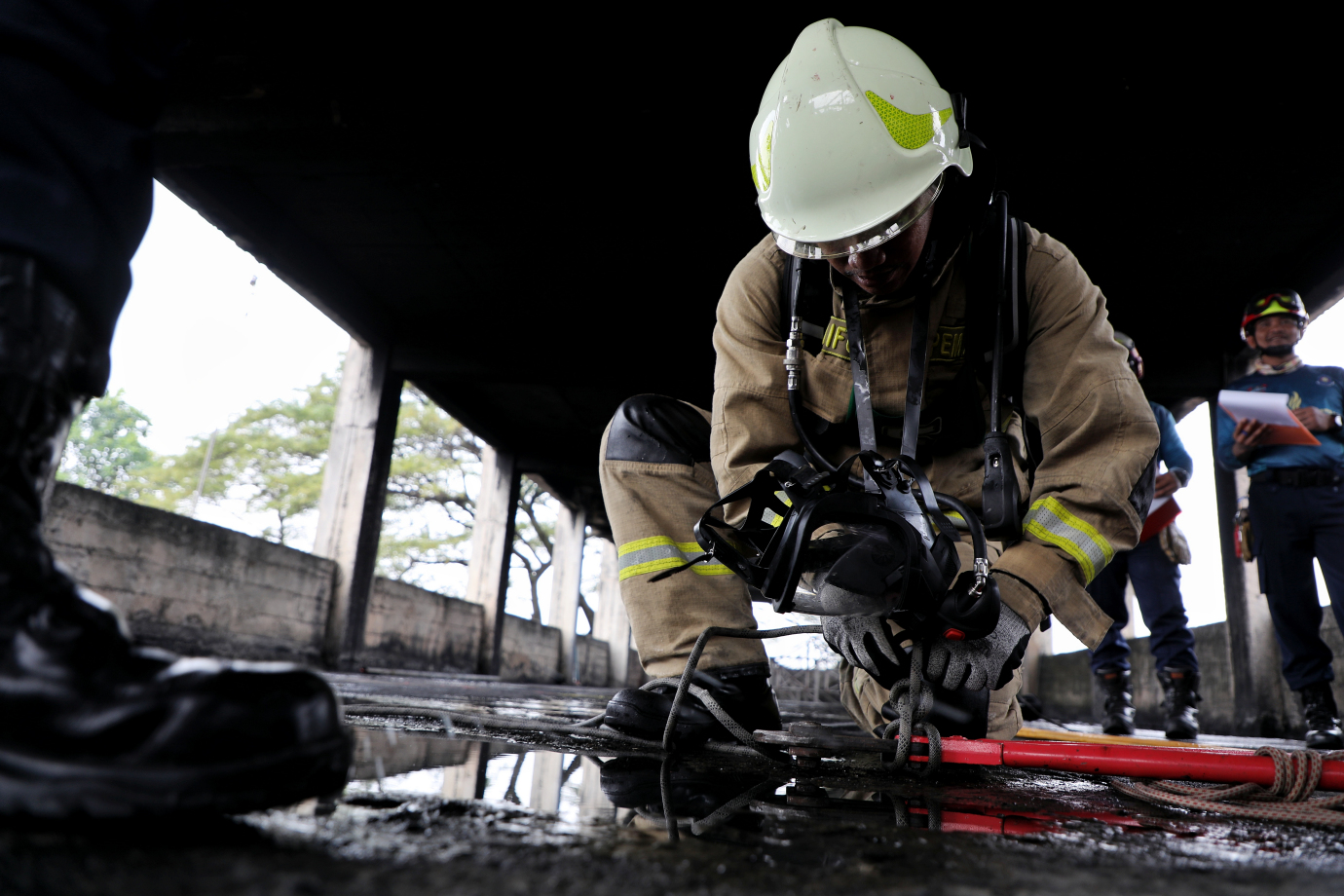 Sejumlah petugas pemadam kebakaran mengikuti Jakarta Fire Fighting Challenge (JFFC) 2024 di Pusat Pendidikan dan Pelatihan Gulkarmat, Ciracas, Jakarta Timur, Selasa (25/6). Jakarta Fire Fighter Challenge tahun ini mengusung tema \"Melalui Kegiatan Skill Kompetisi antar Sektor, Kita Wujudkan Petugas Pemadam Kebakaran yang Profesional Dalam Rangka Mendukung Sukses Jakarta untuk Indonesia\".