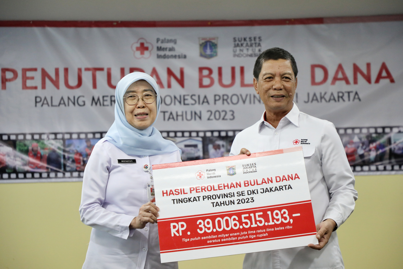 Asisten Kesejahtetaan Rakyat DKI Jakarta, Widyastuti secara resmi menutup kegiatan Bulan Dana Palang Merah Indonesia (PMI) Tahun 2023 di Balai Kota DKI Jakarta, Jalan Medan Merdeka Selatan, Gambir, Jakarta Pusat, Rabu (26/6). Raihan penggalangan Bulan Dana PMI Provinsi DKI Jakarta 2023 mencapai Rp 39,006 miliar atau meningkat dari tahun sebelumnya sebesar Rp 36,8 miliar.
