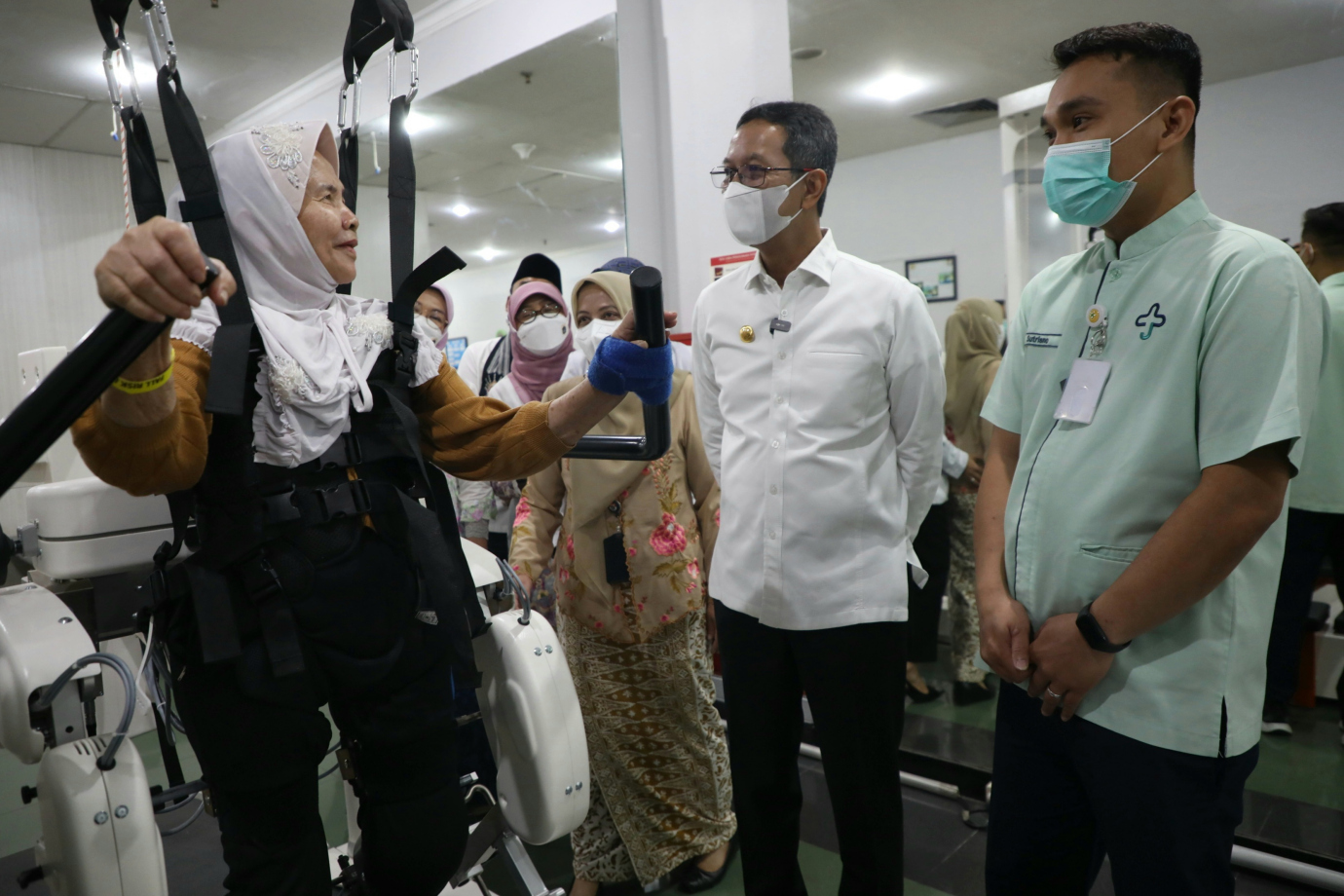 Penjabat (Pj) Gubernur DKI Jakarta, Heru Budi Hartono meninjau Rumah Sakit Umum Daerah (RSUD) Cengkareng, Jalan Bumi Cengkareng Indah, Cengkareng, Jakarta Barat, Jumat (21/6). Kunjungan ini untuk melihat sejumlah fasilitas kesehatan antaranya IGD; ruang kompartemen jantung, stroke, trauma anak dan kebidanan; serta ruang khusus terpadu.