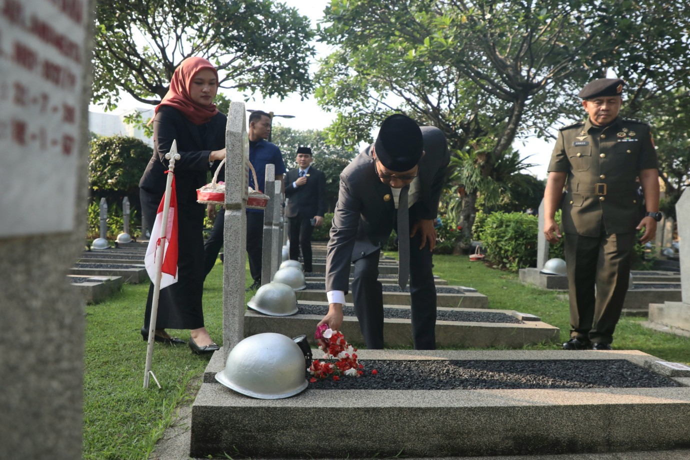 Penjabat (Pj) Gubernur Provinsi DKI Jakarta, Heru Budi Hartono memimpin upacara dan ziarah di Taman Makam Pahlawan (TMP) Kalibata, Jalan Raya Kalibata, Pancoran, Jakarta Selatan, Rabu (19/6). Kegiatan upacara dan ziarah ini dalam rangka menyambut Hari Ulang Tahun (HUT) DKI Jakarta ke-497 pada 22 Juni mendatang. #hutjakarta2024