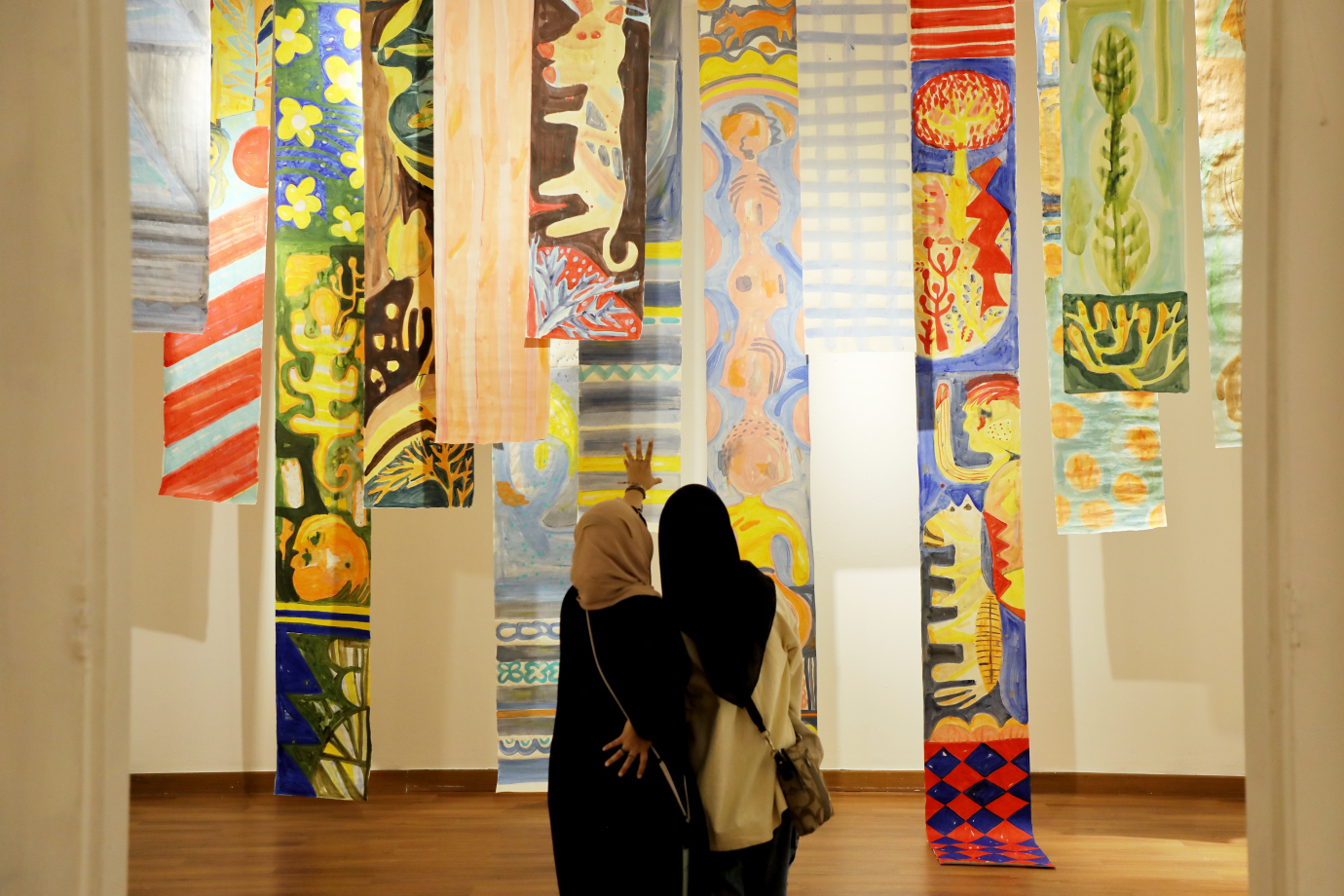 Melihat pameran seni rupa Tiga Sisi: Jelajah dan Media di Galeri Nasional, Gambir, Jakarta Pusat, Rabu (19/6). Pameran yang menampilkan karya-karya dari tiga perempuan perupa yakni Ayu Arista Murti, Endang Lestari dan Theresia Agustina Sitompul yang berlangsung dari 14 Juni hingga 4 Juli 2024.