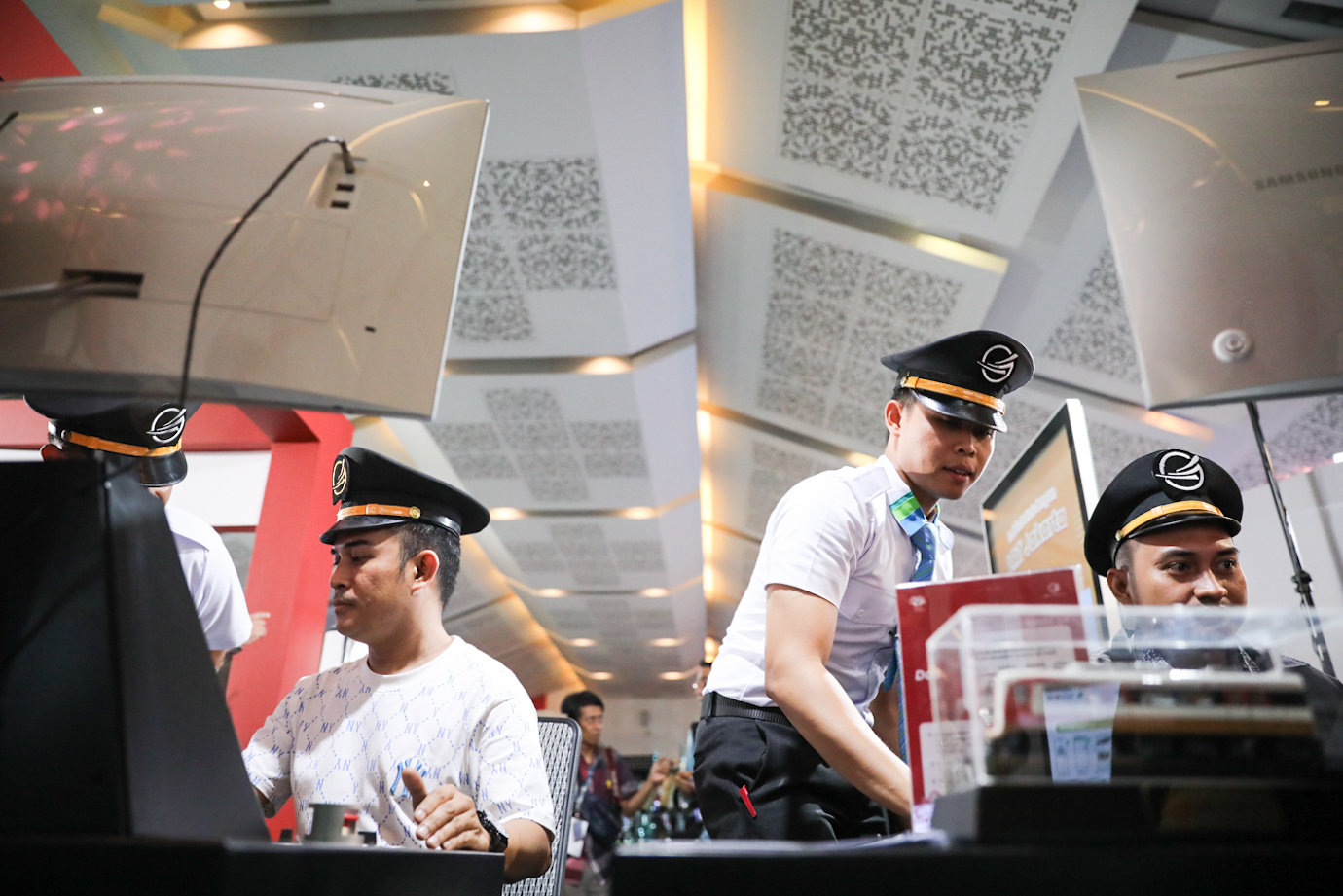 Sejumlah pengunjung Jakarta Fair Kemayoran mencoba jadi masinis di train simulator LRT Jakarta di Anjungan Pemprov DKI Jakarta, Hall C1 JI Expo Kemayoran, Jakarta Pusat. LRT Jakarta menghadirkan dua unit train simulator di booth Jakpro pada 12-23 Juni 2024 yang dapat dicoba oleh pengunjung Jakarta Fair Kemayoran secara gratis.