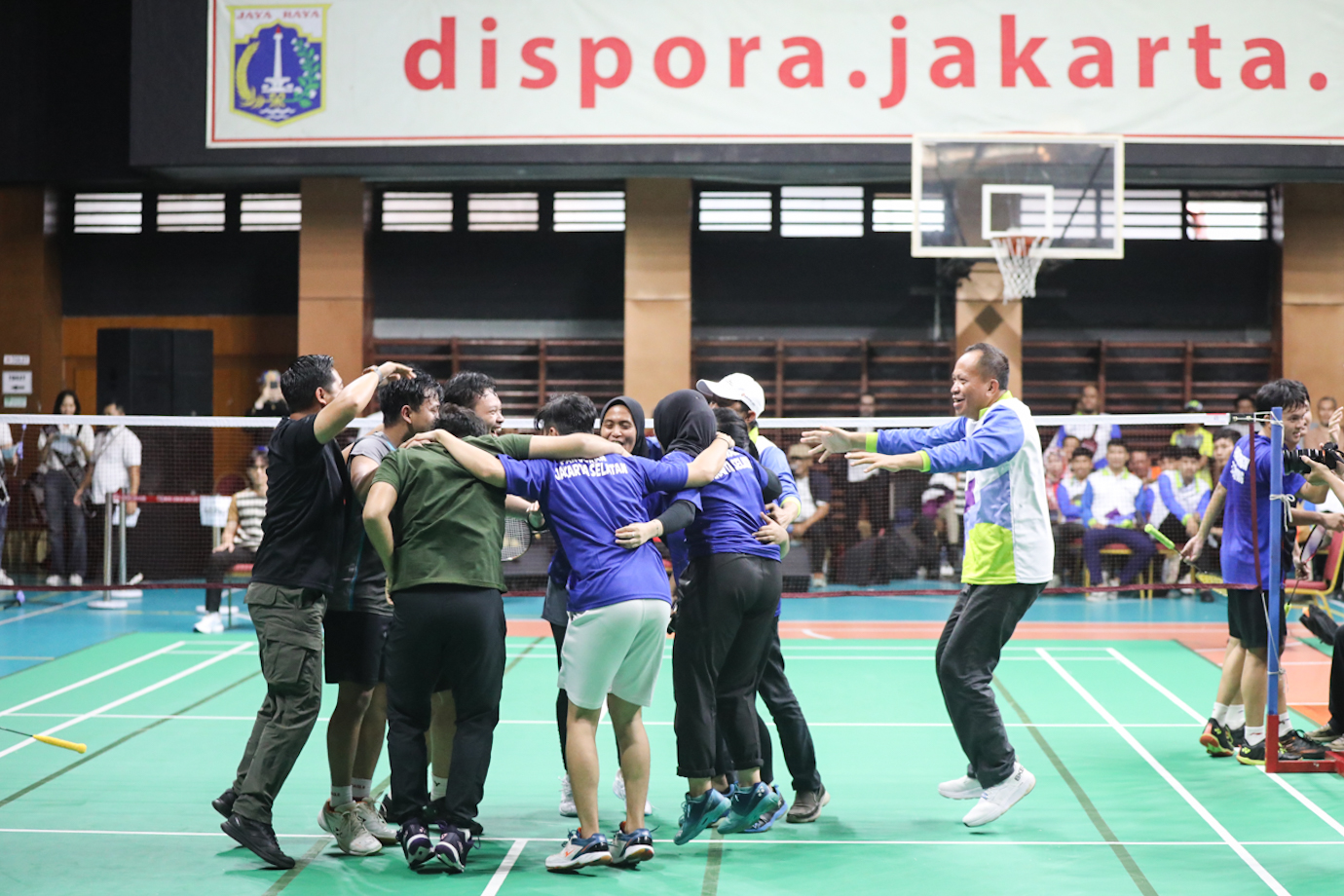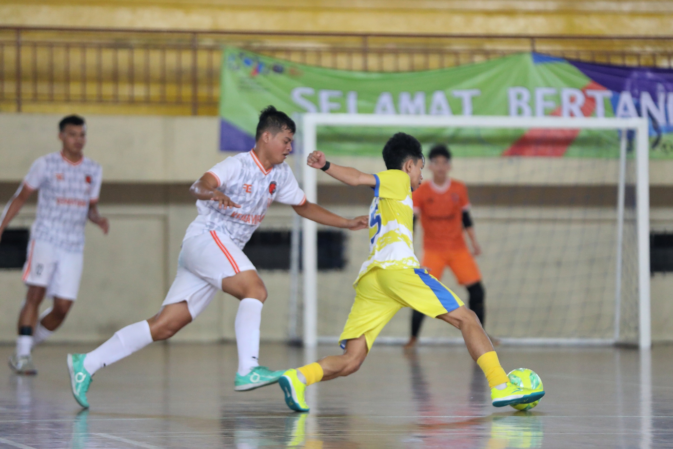 Babak semifinal dan final kompetisi futsal Pekan Olahraga Warga Jakarta digelar di GOR Ciracas, Jakarta Timur, Kamis (13/6). Keempat Tim yang bertanding untuk memperebutkan piala Pj Gubernur tersebut yakni, Jakarta Timur, Jakarta Barat, Jakarta Selatan dan Jakarta Pusat.