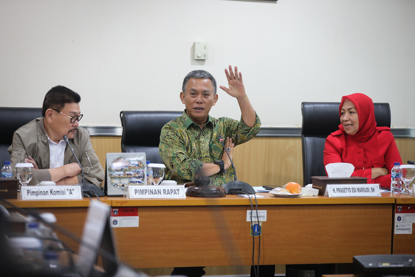 Ketua DPRD DKI Jakarta, Prasetyo Edi Marsudi didampingi Wakil Ketua Komisi A, Inggard Joshua dan Sekretaris Komisi B, Wa Ode Herlina memimpin rapat pimpinan gabungan (Rapimgab) di Lantai 10 Gedung DPRD DKI Jakarta, Gambir, Jakarta Pusat, Rabu (12/6). Rapat tersebut membahas dan mencari solusi terkait permasalahan warga di RW 01 Kelurahan Melawai, Kebayoran Baru, Jakarta Selatan.