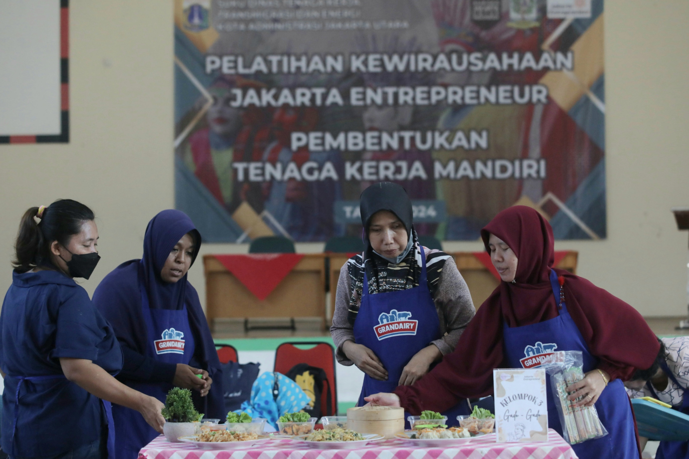 Suku Dinas Tenaga Kerja, Transmigrasi dan Energi (Sudin Nakertransgi) Jakarta Utara menggelar pelatihan tenaga kerja mandiri bidang kuliner angkatan kedua tahun 2024 di Aula Kantor Sudin Nakertransgi Jakarta Utara, Jalan Plumpang Semper, Tugu Selatan, Koja, Jakarta Utara, Rabu (12/6). Pelatihan yang digelar dari 10-14 Juni 2024 ini diikuti 50 peserta yang berasal dari enam kecamatan yang ada di Jakarta Utara.