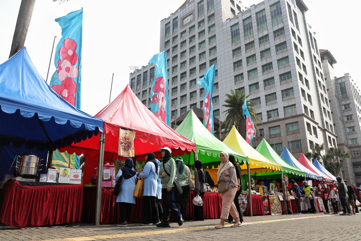 Sebanyak 40 usaha mikro, kecil, dan menengah (UMKM) memeriahkan bazar tingkat kota di Halaman Kantor Wali Kota Jakarta Selatan, Selasa (11/6). Kepala Suku Dinas Perindustrian, Perdagangan, Koperasi, Usaha Kecil, dan Menengah (Sudin PPKUKM) Jakarta Selatan, Parulian Tampubolon mengatakan, selain binaan Sudin PPKUKM, peserta bazar juga merupakan binaan dari Sudin terkait, seperti Sudin Nakertransgi Jakarta Selatan, serta dukungan dari Food Station dan Dharma Jaya.