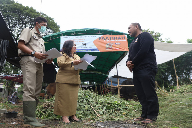 Suku Dinas Ketahanan Pangan, Kelautan dan Pertanian (Sudin KPKP) Jakarta Barat melakukan monitoring dan pengawasan hewan kurban di tempat penampungan hewan kurban Faatihah di Jalan Swadarma Raya, Srengseng, Kembangan, Jakarta Barat, Senin (3/6). monitoring dan pengawasan ini dilakukan dalam rangka pengecekan kesehatan hewan kurban yang ada pada tempat-tempat penampungan dalam rangka menyambut Iduladha 1445 hijriah/2024 Masehi. #iduladha2024
