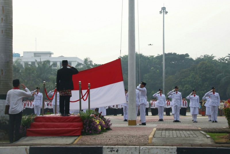 Wali Kota Jakarta Timur, M. Anwar memimpin upacara peringatan Hari Lahir Pancasila 2024 di halaman kantor Walikota Jakarta Timur, Sabtu (1/6). Upacara ini diikuti seluruh Aparatur Sipil Negara (ASN) di lingkungan Pemkot Jakarta Timur ini diawali dengan pengibaran bedera merah putih dan pembacaan amanat dari Kepala Badan Pembinaan Ideologi Pancasila (BPIP) RI, Yudian Wahyudi.