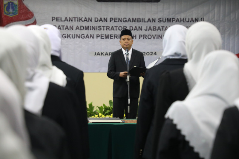 Sekretaris Daerah (Sekda) DKI Jakarta, Joko Agus Setyono melantik 38 Pejabat administrator dan Pengawas di lingkungan Pemerintah Provinsi DKI Jakarta, di Grha Ali Sadikin, Balai Kota DKI Jakarta, Jumat (31/5). 38 pejabat yang dilantik terdiri dari 21 Pejabat Eselon III dan 17 Pejabat eselon IV.