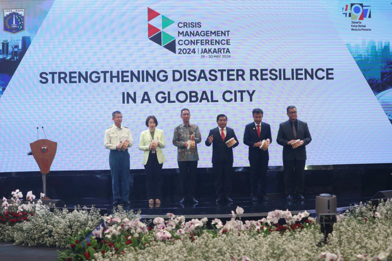 Penjabat (Pj) Gubernur DKI Jakarta, Heru Budi Hartono membuka Konferensi Manajemen Krisis (Crisis Management Conference/CMC) 2024 di The Langham Ballroom, Senayan, Kebayoran Baru Jakarta Selatan, Rabu (29/5). Konferensi Manajemen Krisis (Crisis Management Conference/CMC) 2024 digelar selama dua hari pada 29-30 Mei 2024 mengangkat tema \'Stengthening Disaster Resilience In A Global City\'.