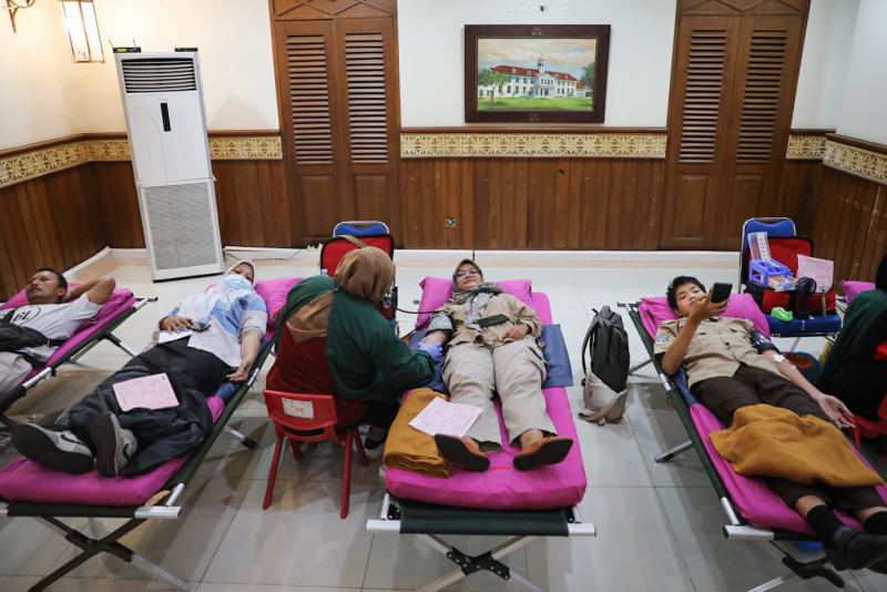 Pemerintah Kota Jakarta Pusat bersama Palang Merah Indonesia (PMI) DKI Jakarta menggelar kegiatan donor darah selama dua hari pada 28-29 Mei 2024 di Kantor Wali Kota Jakarta Pusat, Selasa (29/5). Kegiatan donor darah ini diikuti sejumlah ASN, PJLP dan masyarakat umum dalam rangka menyambut hari ulang tahun (HUT) ke-497 Kota Jakarta.