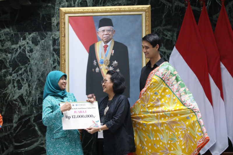 Natalia Kartika dengan desain Pucuk Rebung terpilih sebagai pemenang dalam Penganugerahan Juara Lomba Desain Batik Betawi 2024 di Balai Agung, Balai Kota DKI Jakarta, Kamis (30/5). Dalam kegiatan ini hadir Penjabat (Pj) Gubernur DKI Jakarta, Heru Budi Hartono bersama Pj Ketua TP PKK DKI, Mirdiyanti Heru dan Ketua Pokja II TP PKK Pusat, Nurlailawati.