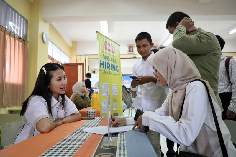 Sebanyak 22 perusahaan dan 15 perguruan tinggi swasta ternama meramaikan Career Day atau bursa lowongan kerja di SMK Sahid, Jalan H. Baping, Susukan, Ciracas, Jakarta Timur, Kamis (30/5). Terdapat 619 pelamar kerja dari luar sekolah serta 115 pelamar alumni SMK Sahid yang mengirim lamaran pada kegiatan tersebut.