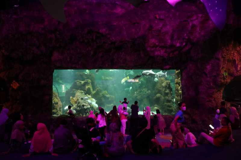 Menikmati suasana libur cuti bersama Kenaikan Yesus Kristus ribuan wisatawan menikmati salah satu wahana Sea World Ancol di Jalan Lodan Timur, Ancol, Jakarta, Jumat (10/5). Tercatat sebanyak 4.326 wisatawan berkunjung menikmati salah satu wahana wisata Ancol Taman Impian.