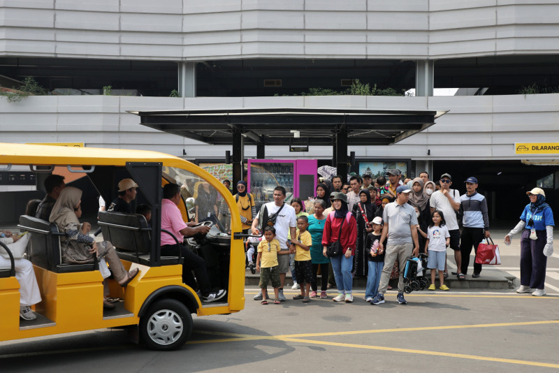Sejumlah pengunjung menghabiskan waktu libur cuti bersama Kenaikan Isa Almasih di Taman Mini Indonesia Indah (TMII), Jakarta Timur, Jumat (10/5). Hingga pukul 13.00 WIB sebanyak kurang lebih 7.000 pengunjung sudah memadati TMII.