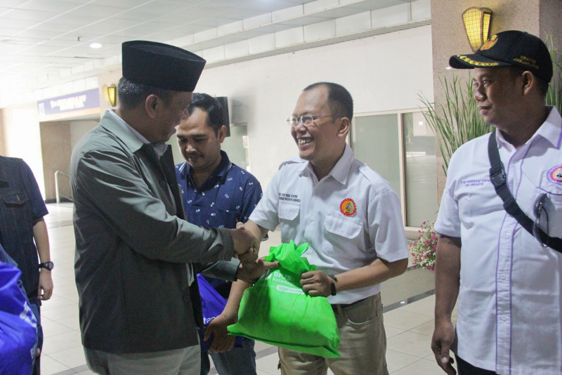 Pemerintah Kota Jakarta Selatan menggelar peringatan May Day di selasar kantor Wali Kota Jakarta Selatan, di Jalan Prapanca, Kelurahan Petogogan, Kecamatan Kebayoran Baru, Rabu (1/5). Kegiatan pemberian santunan dan sembako kepada buruh dan keluarga pekerja yang kekurangan, seperti yatim piatu dan janda ini melibatkan 250 peserta dari lima serikat perkerja di wilayah Jakarta Selatan.