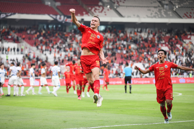 Kesebelasan Persija Jakarta bertanding melawan PSIS Semarang pada pertandingan laga akhir Liga 1 2023-2024 di Stadion Utama Gelora Bung Karno (SUGBK), Jakarta Pusat, Selasa (30/4). Dalam laga yang dihadiri 18.124 penontom tersebut, Persija Jakarta mengalahkan PSIS Semarang dengan skor 2-1.