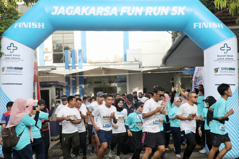 150 peserta ikuti Jagakarsa Fun Run 5K di Jagakarsa, Jakarta Selatan, Minggu (28/4). Kegiatan ini digelar dalam rangka menyambut HUT ke-9 RSUD Jagakarsa dengan rincian 100 peserta dari jajaran pegawai RSUD Jagakarsa serta tambahan peserta undangan dari luar 50 peserta.