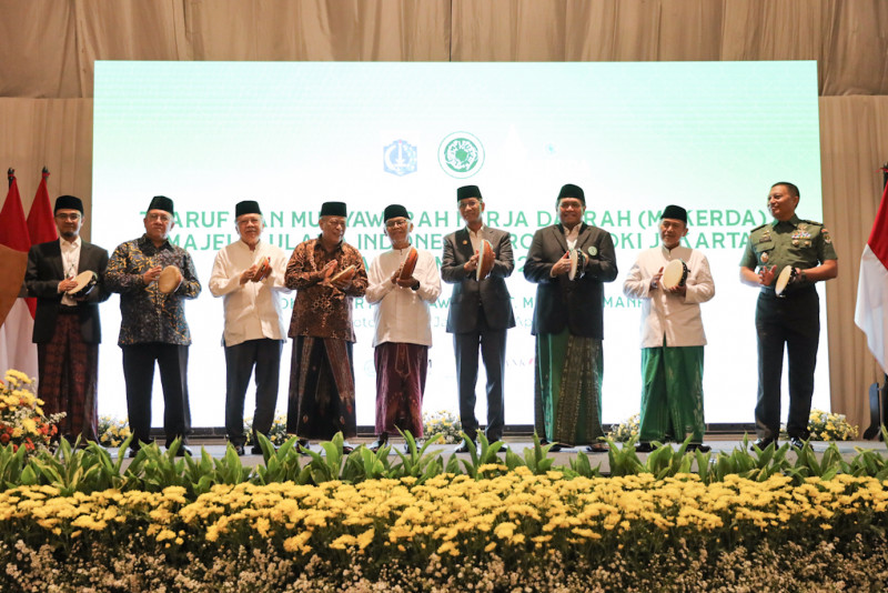 Penjabat (Pj) Gubernur DKI Jakarta, Heru Budi Hartono membuka Musyawarah Kerja Daerah (Mukerda) I Majelis Ulama Indonesia (MUI) Provinsi DKI Jakarta di Hotel Sultan, Tanah Abang, Jakarta Pusat, Senin (29/4). Dalam Mukerda tersebut, Ketua MUI Pusat, KH Anwar Ibrahim melantik pengurus MUI masa khidmat 2023-2028.