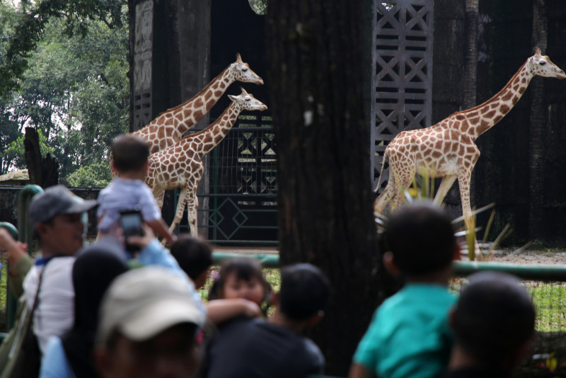 Puluhan ribu pengunjung memadati kawasan wisata Taman Margasatwa Ragunan (TMR), Pasar Minggu, Jakarta Selatan, Sabtu (13/4). Pengelola TMR mencatat hingga pukul 14.00 WIB sebanyak 92.621 warga berkunjung ke TMR dan diprediksi menjadi puncak pengunjung TMR pada hari libur lebaran 2024 ini. #lebaran2024