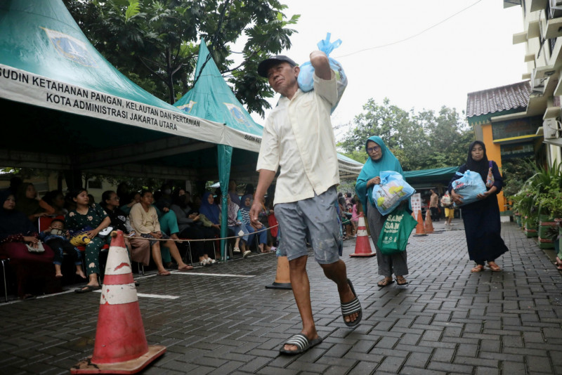 Memasuki bulan suci Ramadan Pemerintah Provinsi DKI Jakarta kembali menggelar kegiatan pasar sembako murah dengan menyiapkan 1.000 paket terdiri dari beras 5 kg, gula pasir 1 kg, minyak goreng 2 liter dan tepung terigu 1kg seharga Rp100.000 per paket di Kantor Kelurahan Kapuk Muara, Penjaringan, Jakarta Utara, Kamis (14/3). Dalam kegiatan ini Pj Gubernur meninjau langsung dan melayani warga yang membeli paket sembako murah. #ramadan2024