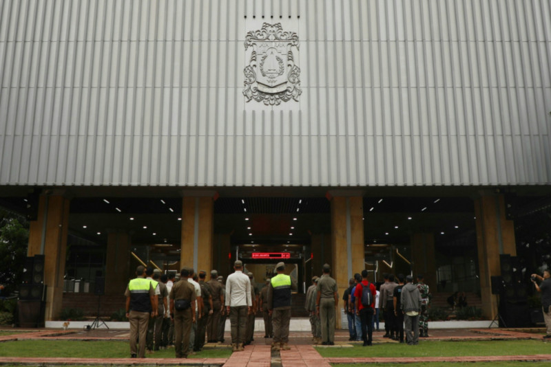 Satuan Polisi Pamong Praja (Satpol PP) DKI Jakarta menggelar Satpol PP Goes to School Edu Fair 2024 di SMAK 8 Penabur, Jalan Tanjung Duren Raya, Kelurahan Tanjung Duren Utara, Kecamatan Grogol Petamburan, Jakarta Barat, Kamis (7/3). Kegiatan diikuti ratusan pelajar setingkat SMA dari 24 sekolah negeri, swasta dan pesantren yang tersebar di lima wilayah kota DKI Jakarta dalam rangka mengedukasi para siswa pelajar tentang apa itu Satpol PP.