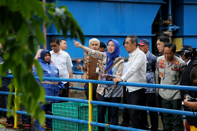 Penjabat (Pj) Gubernur DKI Jakarta, Heru Budi Hartono meninjau Rumah Pompa Ancol, Tanjung Priok, Jakarta Utara, Kamis (29/2). Kunjungan ini dilakukan untuk memastikan rumah pompa berjalan dengan baik, mengingat Jakarta dan sekitarnya diguyur hujan sejak dini hari.