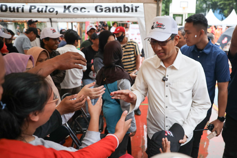 Pemerintah Provinsi (Pemprov) DKI Jakarta melalui menggelar pasar sembako murah di RPTRA Melati Duri Pulo, Tanah Abang, Jakarta Pusat, Rabu (28/2). Pasar murah menjual 1.000 paket sembako seharga Rp100.000 yang berisi 5 kg beras, 1 kg gula, 1 kg tepung dan 2 liter minyak goreng.