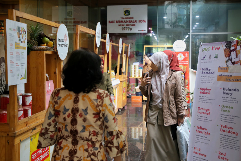 Dinas Perindustrian, Perdagangan, Koperasi, Usaha Kecil Menengah (PPKUKM) DKI Jakarta menggelar Bazar UMKM Jakarta bertema ‘Jelajah Dunia Kreatif Wirausaha Jakarta’ di Balai Kota DKI Jakarta, Selasa (27/2). Bazar yang diikuti sebanyak 45 UMKM binaan (Jakpreneur) terdiri dari kuliner, kriya dan fesyen ini digelar pada 26-29 Februari 2024.