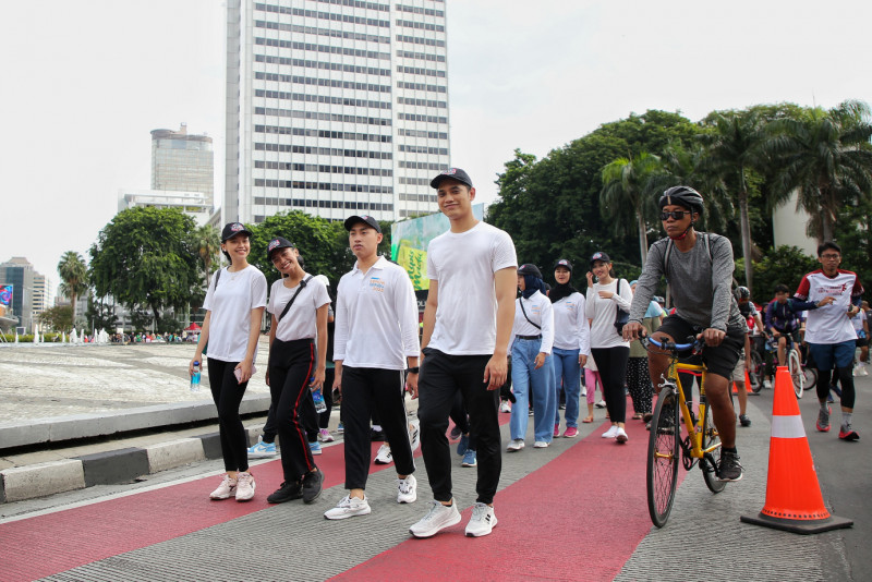 Suku Dinas Pariwisata dan Ekonomi Kreatif ( Sudin Parekraf) melalui Abang None (Abnon) Kepulauan Seribu menggelar kegiatan Jalan Santai di Hari Bebas Kendaraan Bermotor (HBKB) Sudirman - Thamrin, Jakarta Pusat, Minggu (25/2). Kegiatan yang diikuti sebanyak 20 Abang dan None dalam rangka memperkenalkan keindahan Pulau Seribu kepada masyarakat umum sekaligus mengajak masyarakat berolahraga dan melakukan pola hidup sehat apalagi menjelang bulan Ramadan.