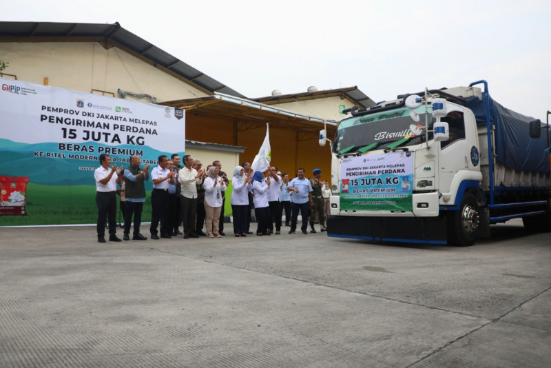 Penjabat (Pj) Gubernur DKI Jakarta, Heru Budi Hartono melepas pengiriman 15 ribu ton beras secara bertahap di PT. Food Station Tjipinang Jaya, Jalan Pisangan Lama Selatan, Pisangan Timur, Pulo Gadung, Jakarta Timur, Rabu (21/2). Hari ini 300 ton beras didistribusikan melalui 20 truk dan sisanya akan dikirimkan secara bertahap hingga menjelang Idulfitri 1445 Hijriah.