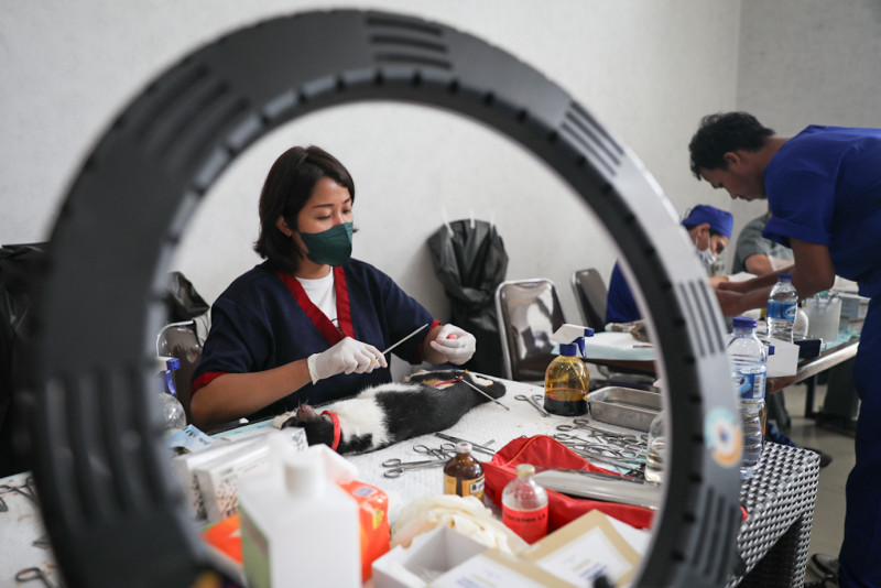 Suku Dinas Ketahanan Pangan, Kelautan dan Pertanian (Sudin KPKP) Jakarta Selatan menggelar sterilisasi kucing lokal gratis di Mall Metro Kebayoran, Pesanggrahan, Jakarta Selatan, Kamis (22/2). Sebanyak 150 kucing lokal disterilisasi oleh gabungan dokter hewan dari berbagai unsur seperti Sudin KPKP Jaksel, Persatuan Dokter Hewan Indonesia (PDHI), Yayasan Peduli Lingkungan Indonesia (YPLI) serta dokter hewan praktik setempat.