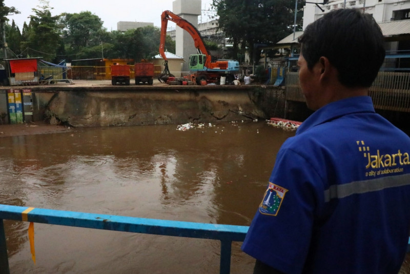 Melihat kesiapsiagaan petugas di Pintu Air Manggarai, Jakarta Pusat, saat menghadapi musim penghujan. Dalam kesehariannya petugas pintu air Manggarai berjaga 24 jam bergantian dalam memantau tinggi muka air yang datang untuk ditata ke sejumlah aliran.