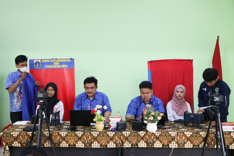 Suku Dinas Kependudukan dan Catatan Sipil (Sudin Dukcapil) Jakarta Selatan melakukan pelayanan jemput bola perekaman KTP-el dan aktivasi Identitas Kependudukan Digital (IKD) di SMAN 55 Jakarta, Pancoran, Jakarta Selatan, Kamis (15/2). Sebanyak 85 siswa SMAN 55 melakukan perekaman KTP-el dan aktivasi IKD pada layanan jemput bola yang digelar selama satu hari tersebut.