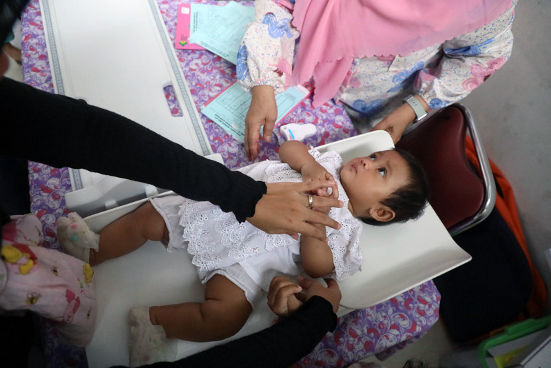 Layanan Pos Pelayanan Terpadu (Posyandu) dan Pos Pembinaan Terpadu (Posbindu) di Ruang Publik Terpadu Ramah Anak (RPTRA) Rawasari Ceria, Jalan Percetakan Negara, Rawasari, Cempaka Putih, Jakarta Pusat dinikmati warga, Rabu (7/2).