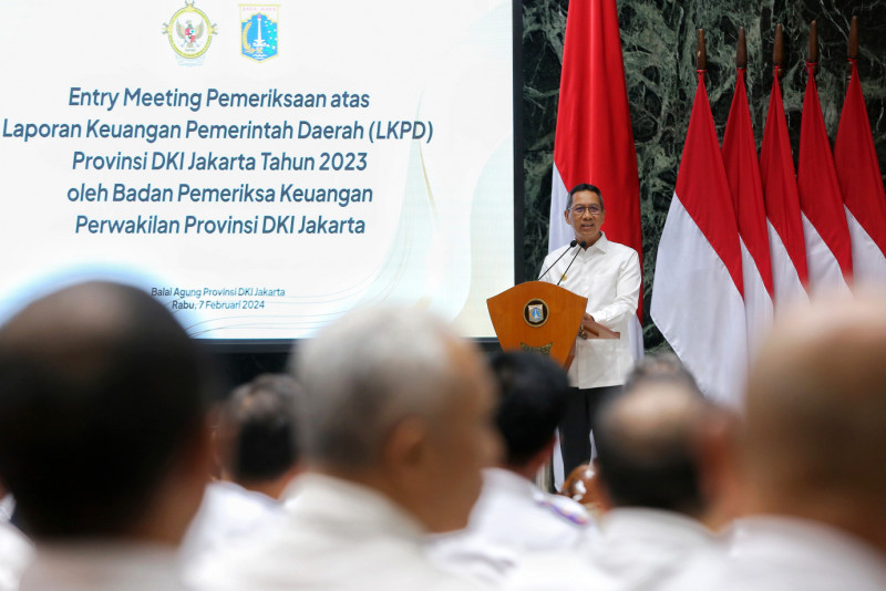 Pemprov DKI Jakarta bersama Badan Pemeriksa Keuangan (BPK) Provinsi DKI Jakarta mengadakan Entry Meeting terkait Pemeriksaan Laporan Keuangan Pemerintah Daerah (LKPD) Provinsi DKI Jakarta Tahun Anggaran 2023 di Balai Agung, Balai Kota DKI Jakarta, pada Rabu (7/2). Penjabat (Pj) Gubernur DKI Jakarta Heru Budi Hartono menyambut baik upaya bersama untuk mengawal akuntabilitas pengelolaan keuangan dan mewujudkan tata kelola pemerintahan yang baik.