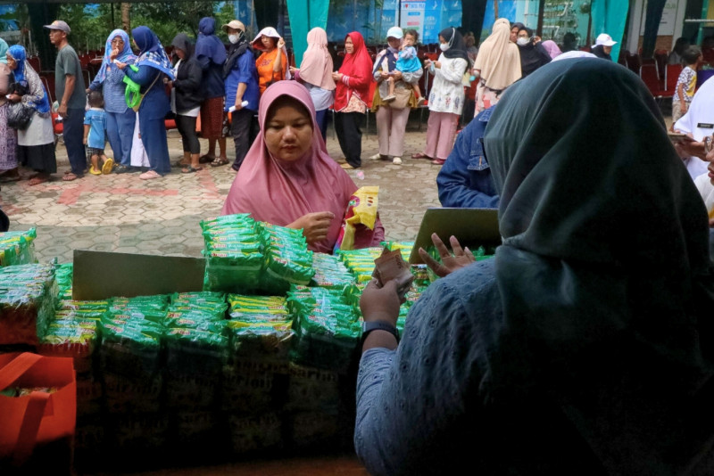 Penjabat (Pj) Gubernur Provinsi DKI Jakarta Heru Budi Hartono meninjau Pasar Sembako Murah di Kantor Kelurahan Koja, Jalan Inspeksi Kali Sunter, Koja, Jakarta Utara, Jumat (2/1). Kegiatan pasar sembako murah ini menyiapkan 700 paket sinergi antara Pemprov DKI, Terminal Peti Kemas Koja dan PT Food Station.
