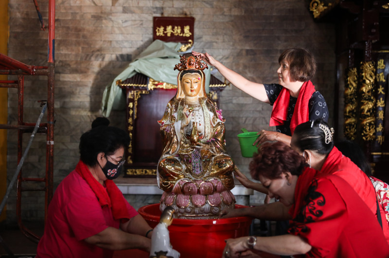 Sejumlah warga keturunan Tionghoa membersihkan patung dewa dan sebagainya di Wihara Amurva Bhumi, Setiabudi, Jakarta Selatan, Jumat (2/2). Pembersihan patung dewa dan wihara dilakukan menjelang perayaan Tahun Baru Imlek 2575 Kongzili yang jatuh pada 10 Februari 2024. #Imlek2024