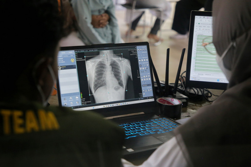 Puskesmas Kecamatan Cilandak menggelar skrining penyakit TBC dengan pemeriksaan rontgen dada dan mantoux di RPTRA Taman Gajah, Cipete Selatan, Cilandak, Jakarta Selatan, Senin (29/1). Pemeriksaan yang tidak dipungut biaya ini diutamakan bagi warga yang tinggal serumah atau kontak langsung dengan pasien positif TBC serta masyarakat umum.