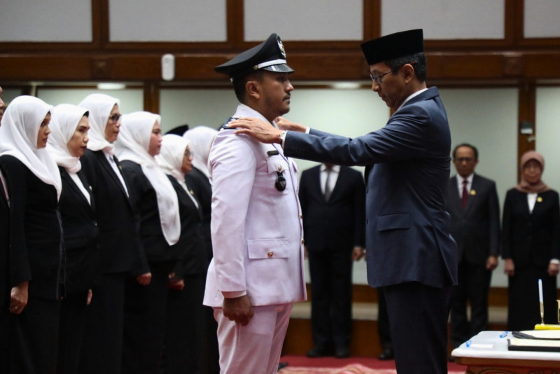 Penjabat (Pj) Gubernur DKI Jakarta, Heru Budi Hartono melantik 103 pejabat Administrator dan Pengawas Lingkungan Pemerintah Provinsi (Pemprov) DKI Jakarta di Balai Agung, Balai Kota DKI Jakarta, Jalan Medan Merdeka Selatan, Gambir, Jakarta Pusat, Jumat (12/1). Pejabat-pejabat yang dilantik berasal dari Biro Hukum Setda, Biro Kepala Daerah Setda, Dinas Kesehatan, Dinas Pendidikan, Dinas Perpustakaan dan Kearsipan, Satuan Polisi Pamong Praja, Kota Administrasi Jakarta Barat, Kota Administrasi Jakarta Selatan, Kota Administrasi Jakarta Timur dan Kota Administrasi Jakarta Utara.